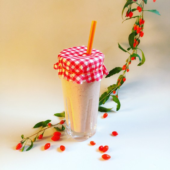 • 200g griechischer Joghurt • 1 EL Chia-Samen • 300g Wassermelone • 150g Gurke • 10 Goji-Beeren • 3 EL Erdbeermarmelade • 10 Eiswürfel